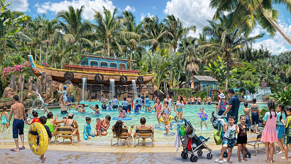 The park boasts 20 modern water attractions with impressive records, such as the longest water roller coaster in Asia (348m), the world’s first 10-lane Larry Racer slide, and the largest double wave pool in Vietnam with waves reaching a height of 2.4m.