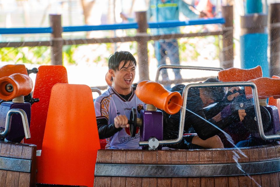 Legend of the Waves is the kind of game that will make you want to queue up and play as soon as you see it. The roller coaster on the water, with its 348m long slide, sends players hurtling continuously through the cool water, the excitement increasing with each turn. 1. The sound of rushing water and the incessant cheers create a vibrant, summery atmosphere. This is a great choice to kick off a fun day with a truly exhilarating “mood boost.”