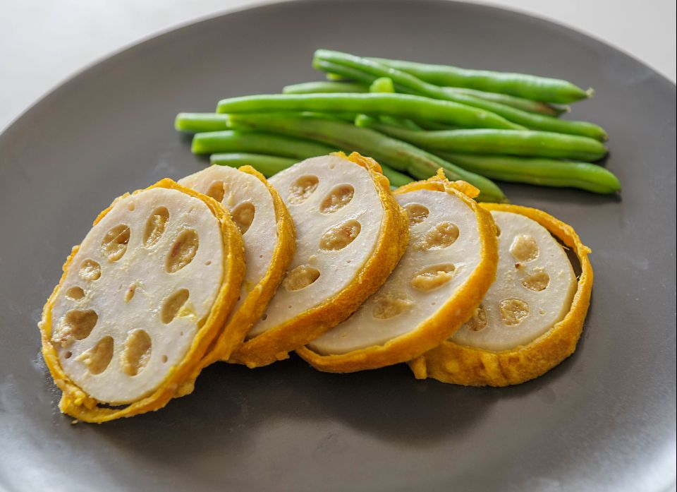 Karashi-renkon – lotus root with yellow mustard, and Takamori-dengaku are both ancient dishes from Kumamoto, dating back hundreds of years. Karashi-renko is highly nutritious and was once offered to the lord of Kumamoto, while Takamori-dengaku is a traditional dish made with seasonal ingredients.