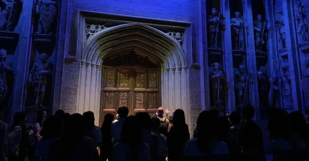 During the tour, you’ll occasionally be invited by volunteers to open the main doors. Don’t hesitate to raise your hand – it’s not just a small gesture, but the moment you officially step into the wizarding world with your own hands. And when the large wooden doors open, the space lights up: the House Ranking Board gleams with gold, the familiar Sorting Hat, and Professor Dumbledore’s golden podium appear before you.